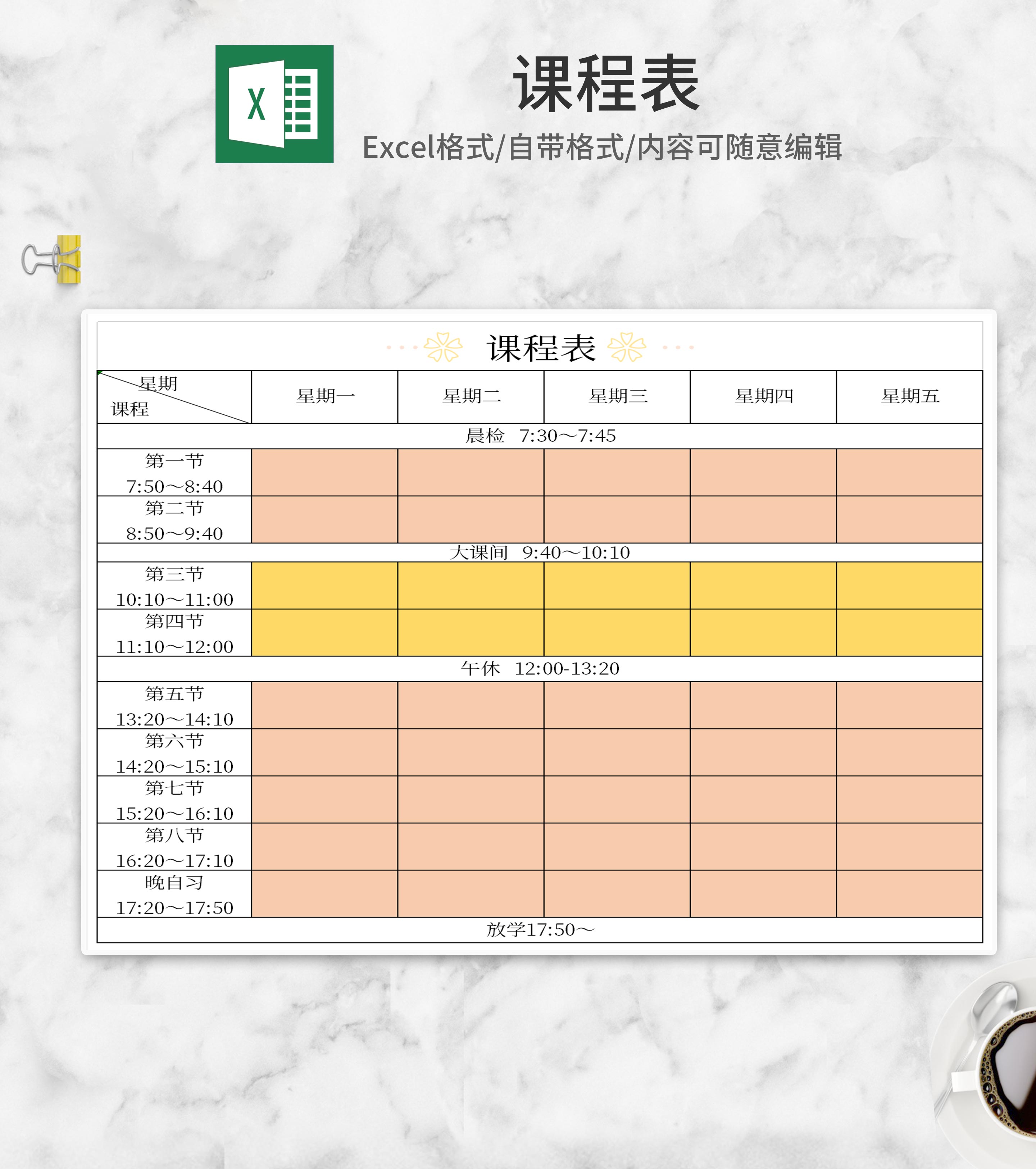 简约学校课程表Excel模板