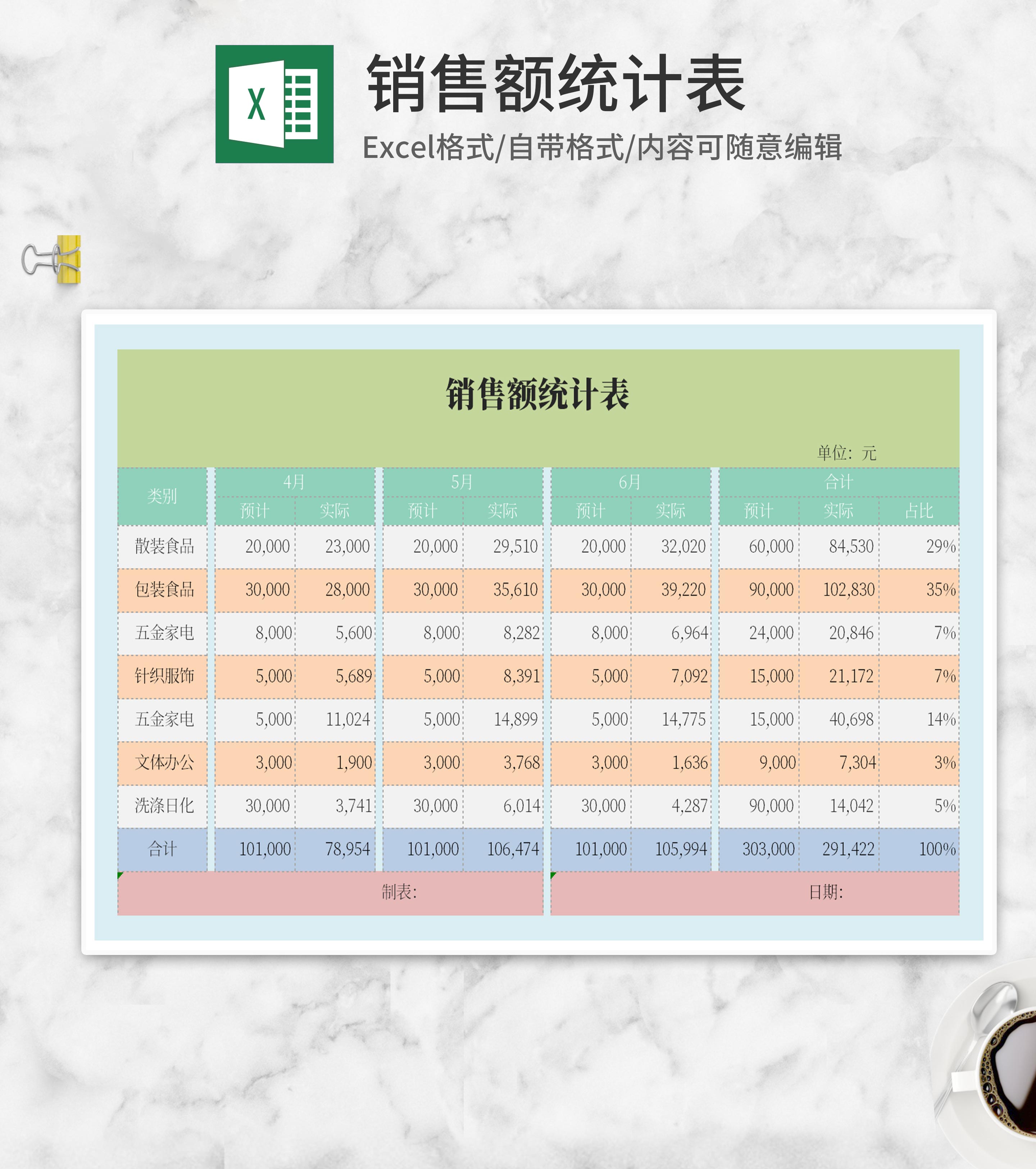 月份销售额统计表Excel模板