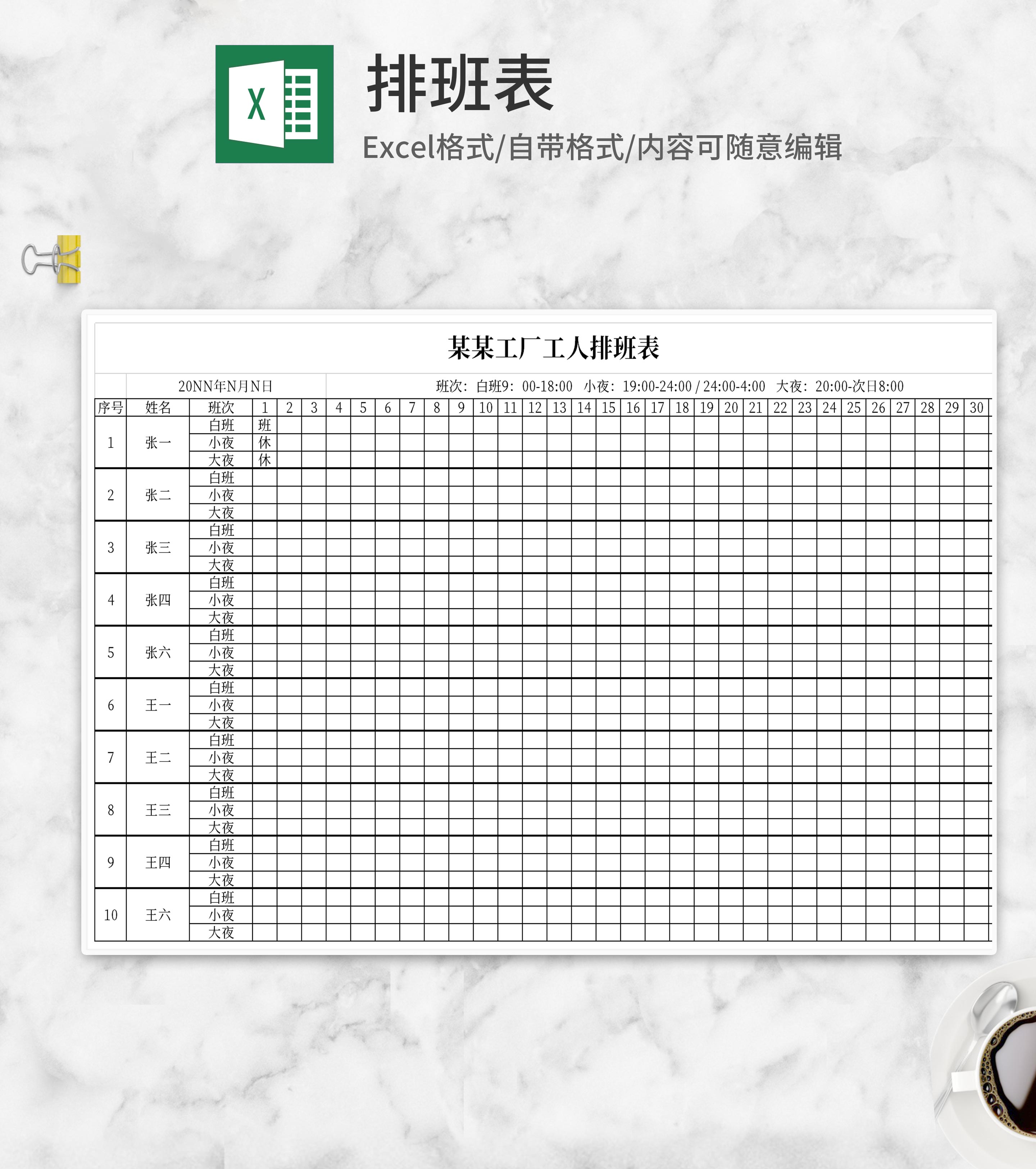 简洁排班表Excel模板