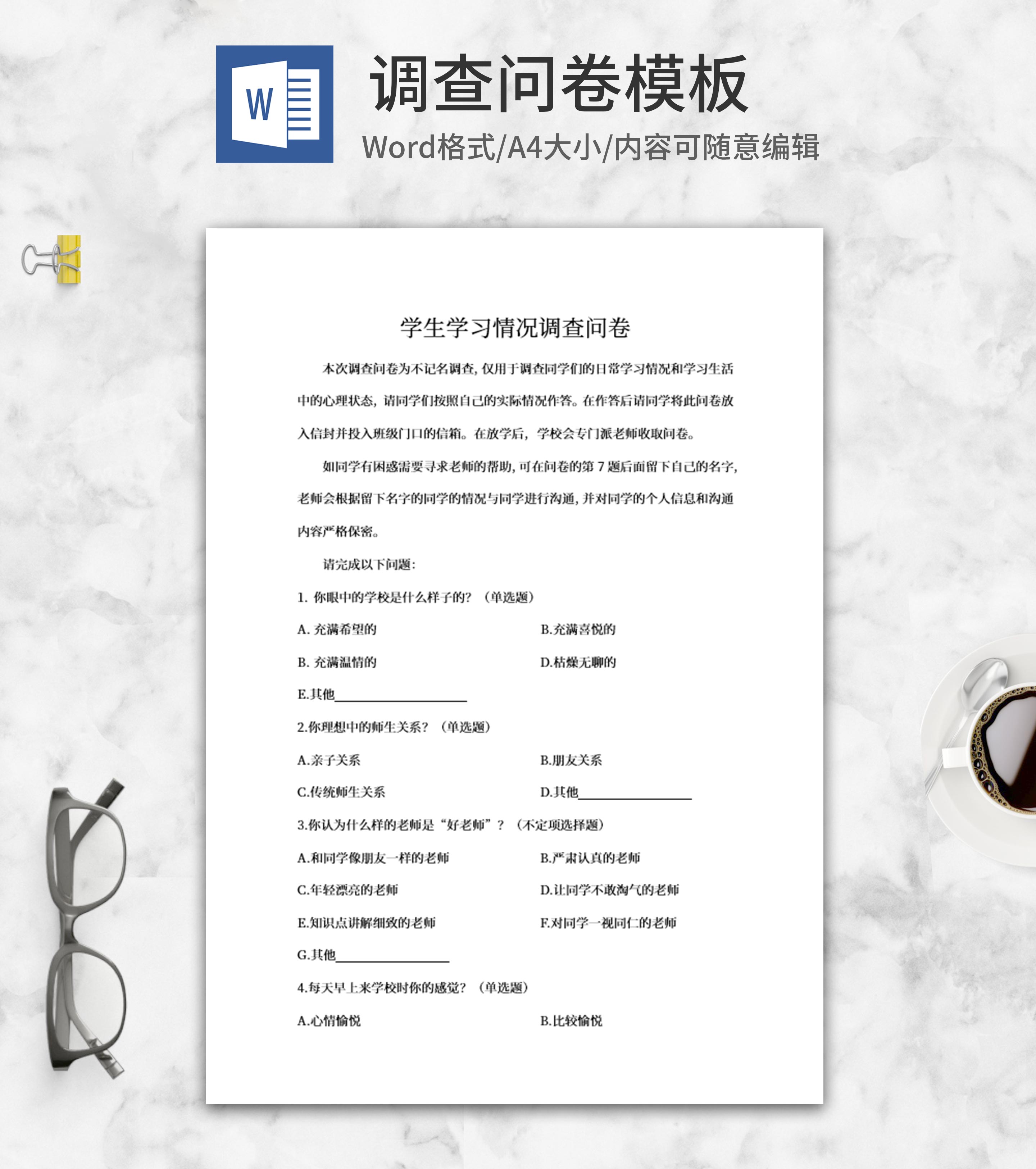 学生学习情况调查问卷word模板