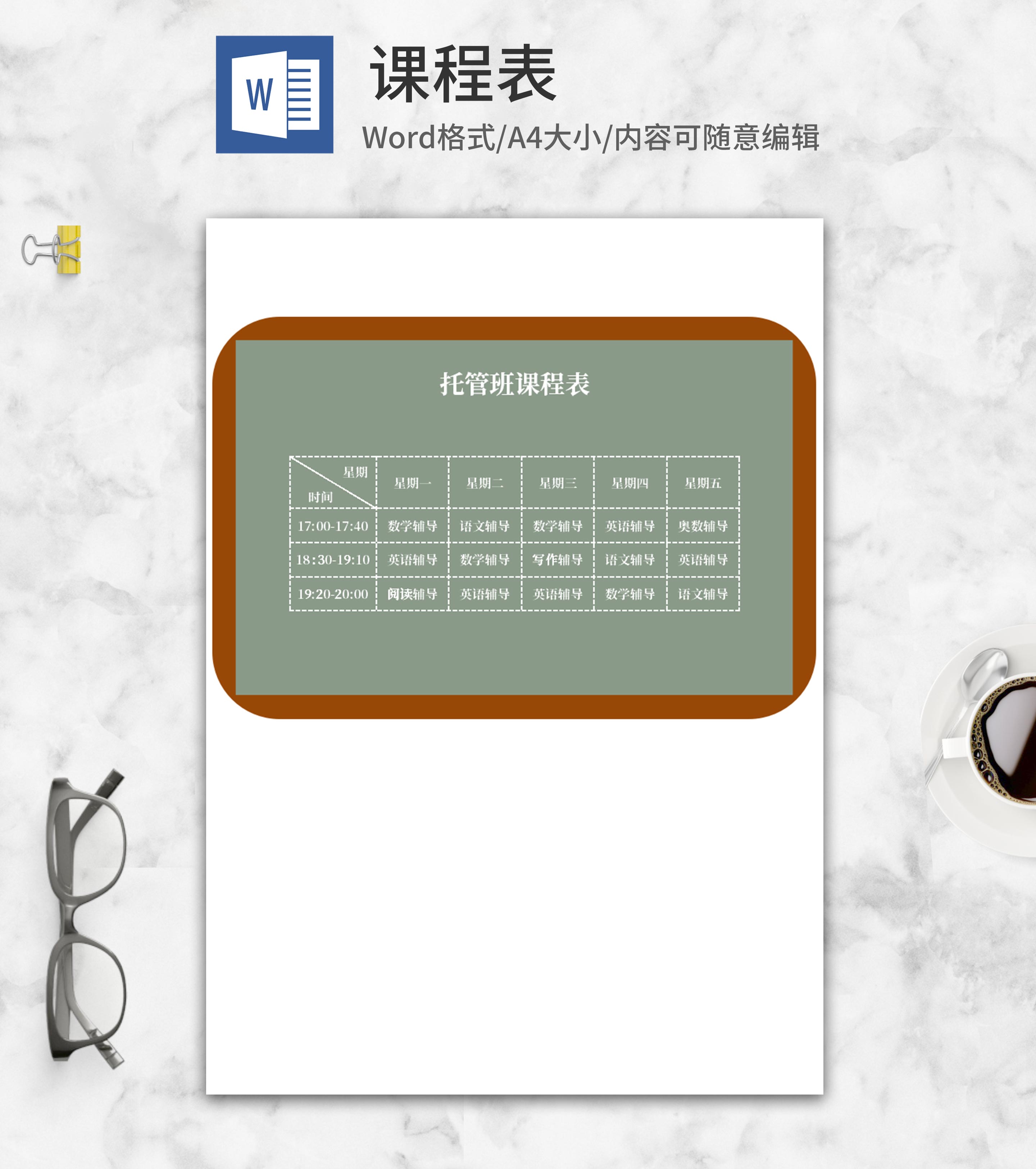 托管班课程表word模板