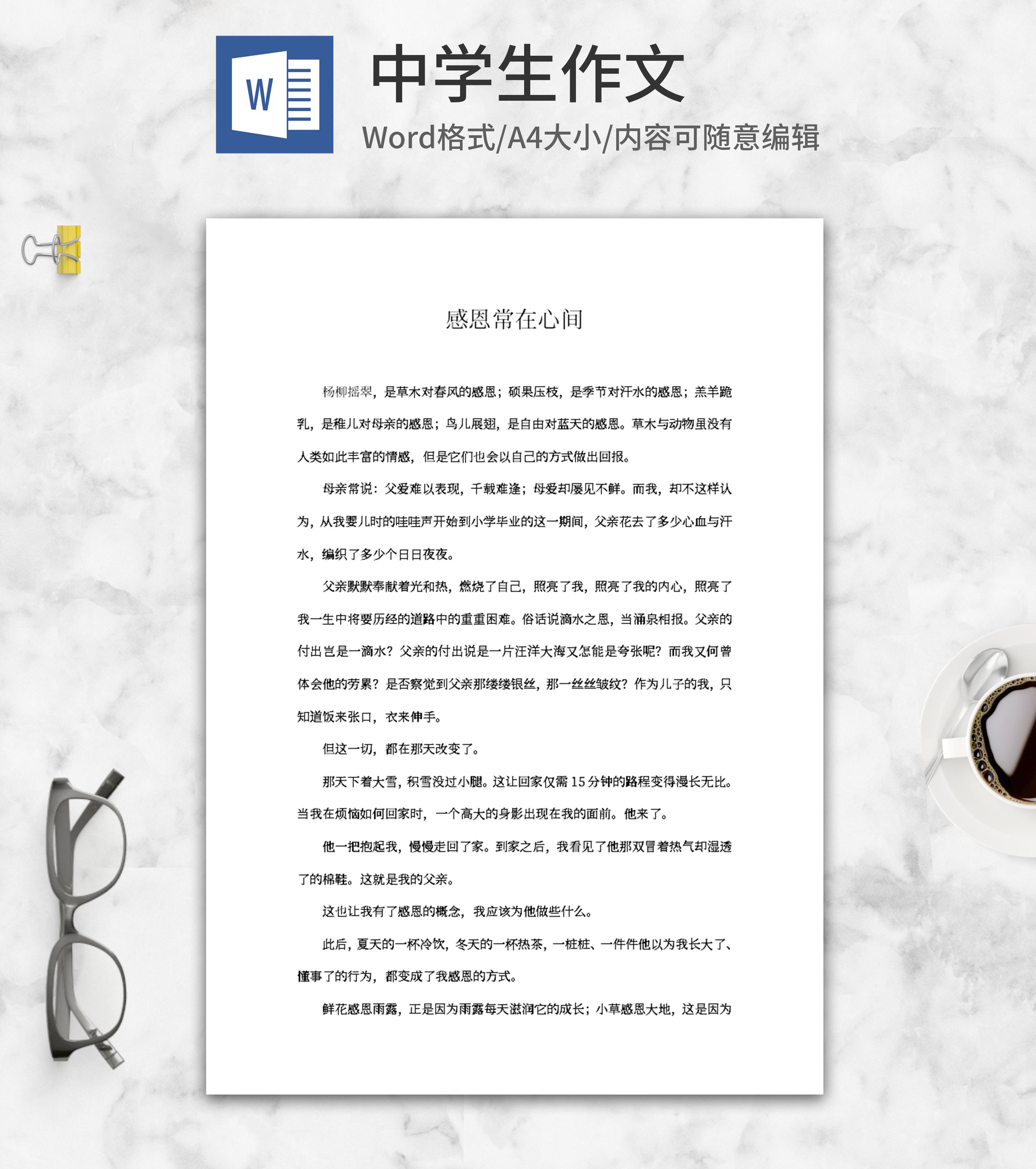 感恩主题中学生作文word模板