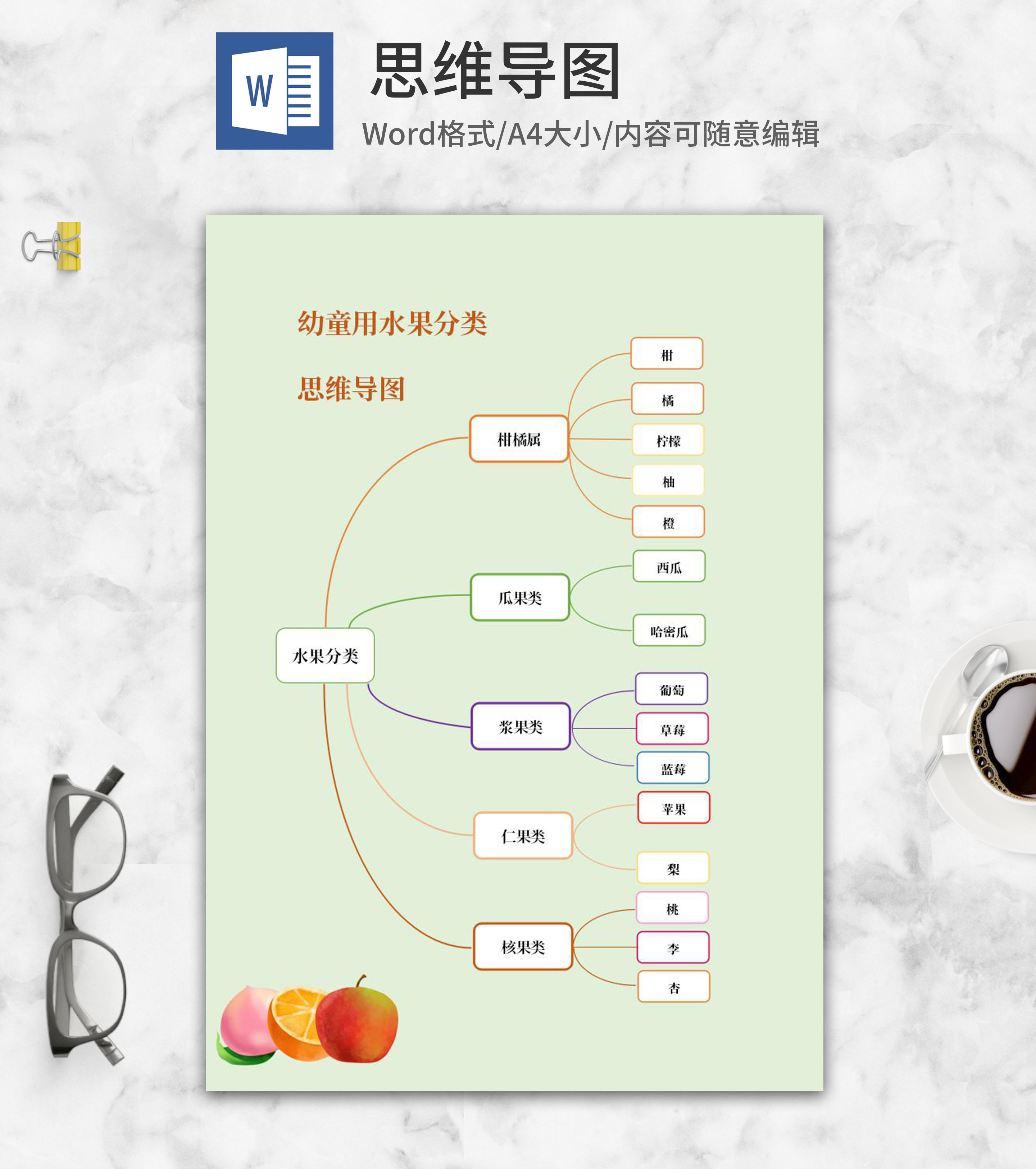 幼童水果分类思维导图word模板
