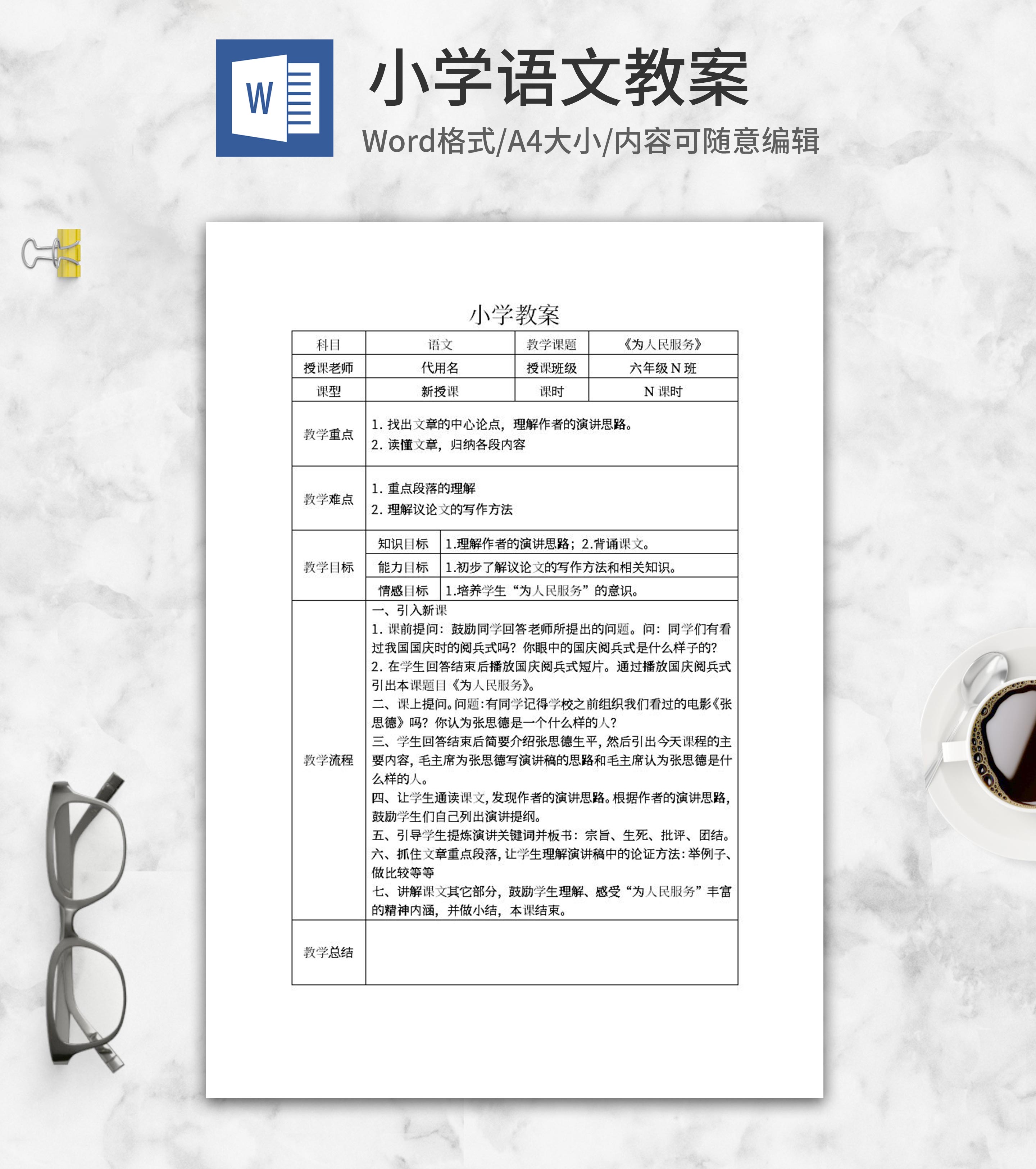 语文教案word模板系列一