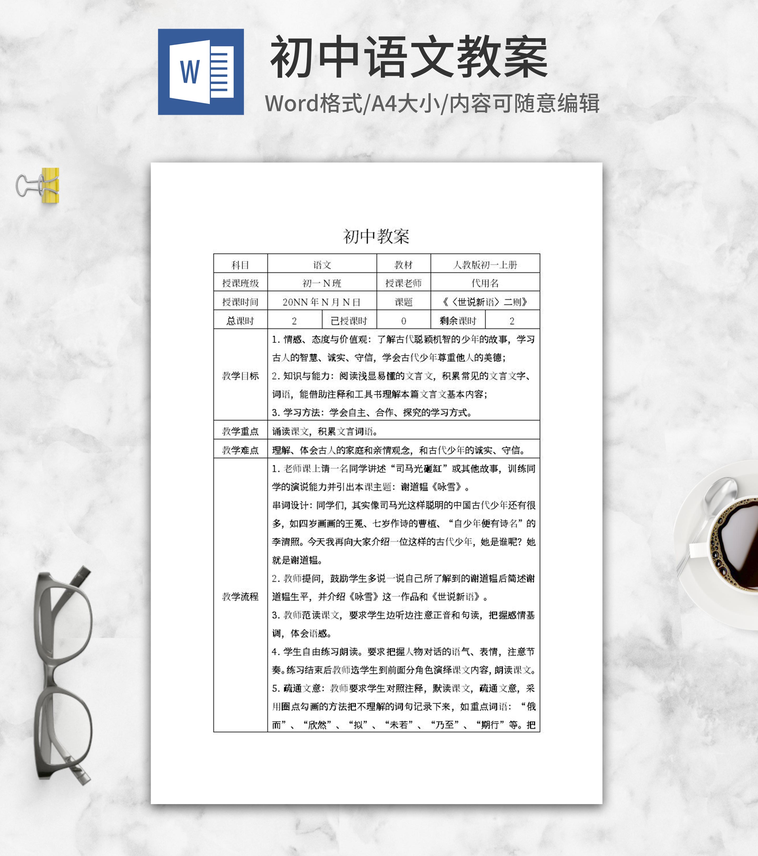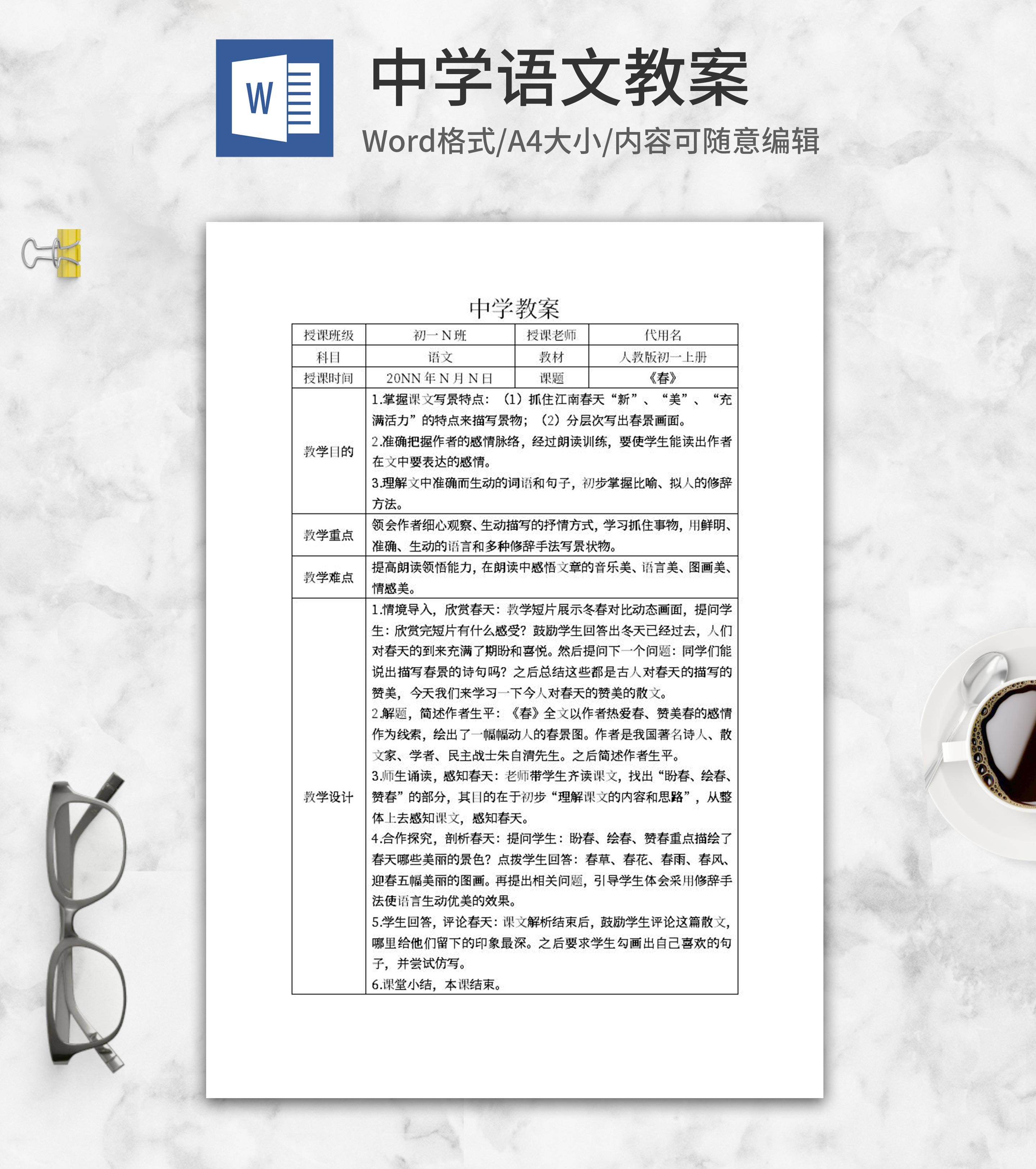 初中语文老师教案word模板
